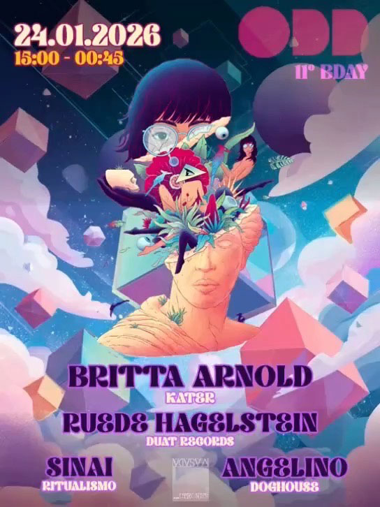 Next up for the Sunday Season calendar in January with Odd Daylight Party at Circolo Masada — another great poster art and flyer from Antoine Doré with ODD presents Britta Arnold, Rusde Hagglstein, Sinai Ritualismo & Angelino Doghouse. For those in Milan, hope you can make it to these amazing daytime electric parties combining music, food and design.