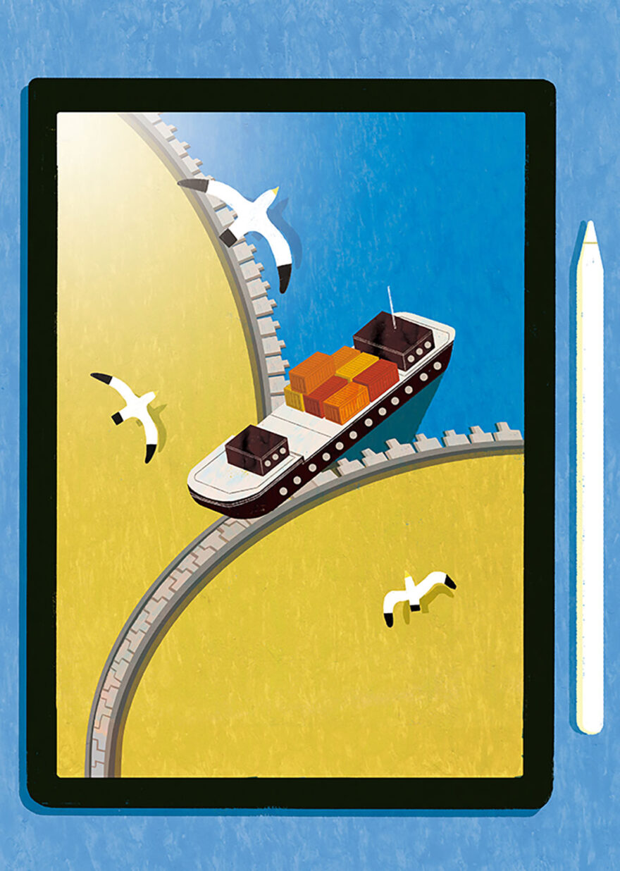 New gorgeous piece by #lcmartist Changyu Zou for Cloud Magazine. This was a conceptual piece on cross-border trade, depicting an…