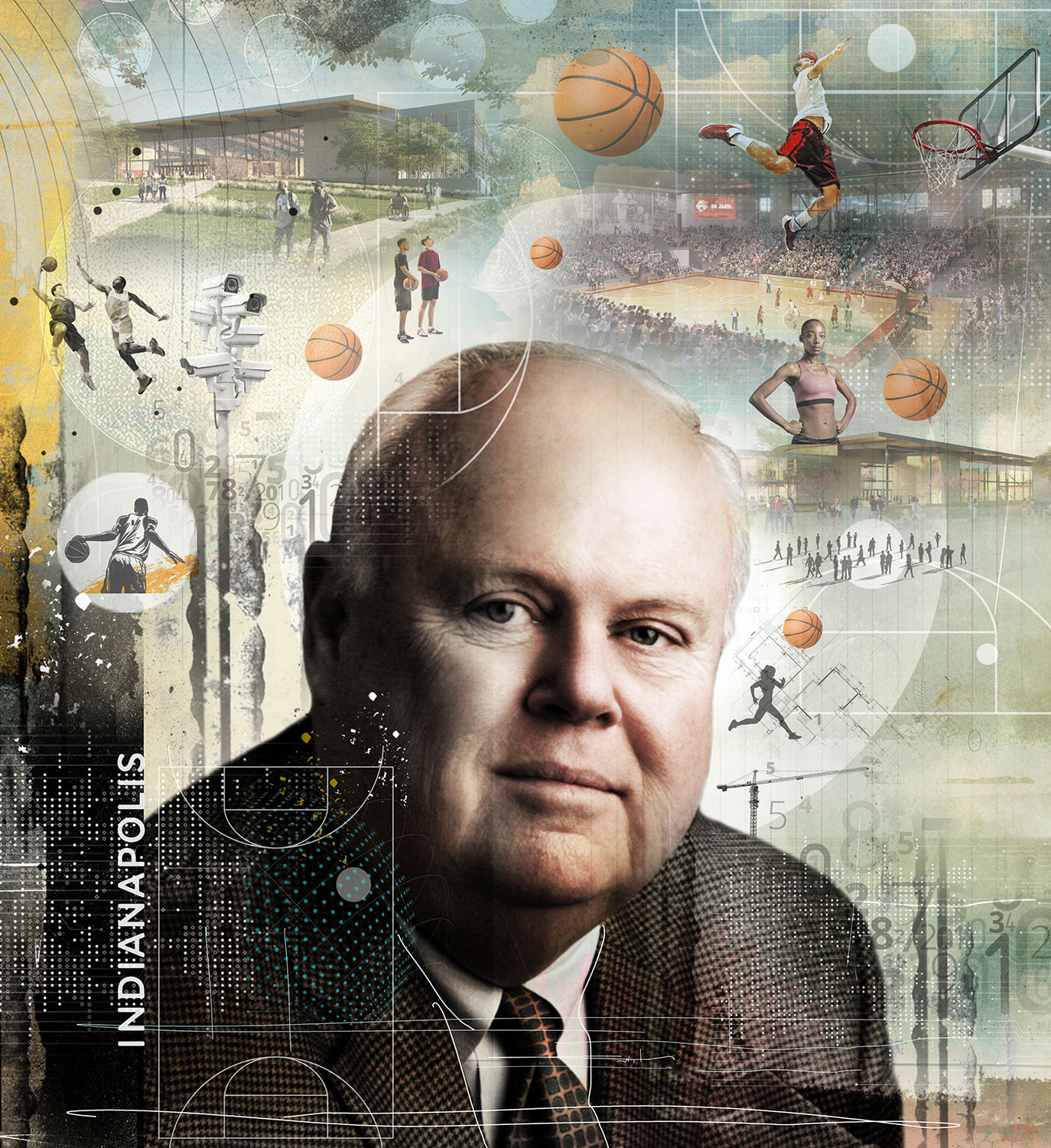 Loving this new portrait of James T. Morris by #lcmartist David Junkin for Indianapolis Monthly. This feature is about the new basketball arena in town and the person who championed the project, Jim Morris hence the name of the article “The Jim Rises: An in-progress basketball arena will open up new possibilites for IU Indy and Jaguar athletics. The facility’s name, meanwhile cements the legacy of an Indiana University trustee and alumnus who devoted his life to this city.”