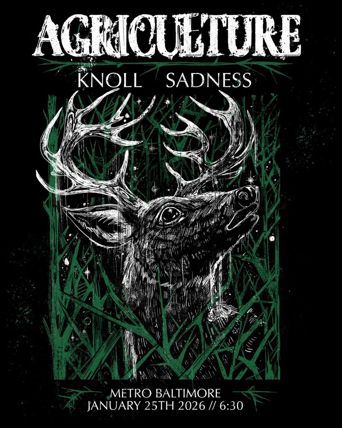 Check out this amazing new poster art by #lcmartist Evangeline Gallagher for ecstatic black metal band AGRICULTURE for their The Spiritual Sound Tour show with Knoll and Sadness at Metro Baltimore in January.