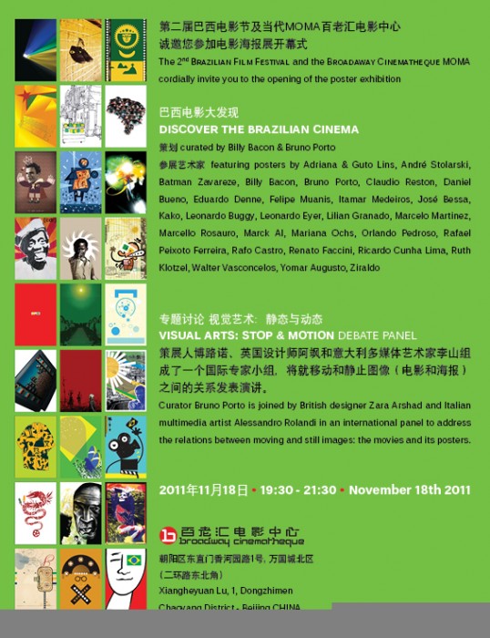Levy Creative Management artist KAKO is featured once again in the 2nd Brazilian Film Festival and the Broadway Cinematheque MOMA in China on November 18th. This poster exhibition is called “Discover the Brazilian Cinema.” Kako’s piece “Foco Brazil” was originally created for “Discover the Brazilian Cinema” show, exhibited at the Art Cine China Gallery along with the Focus Brazil film exhibition, during the Shanghai International Film Festival in 2007. The show was organized by designers Bruno Porto and Billy Bacon and counted with the participation of 30 Brazilian artists and 10 Shanghai’s Raffles Design Institute students.