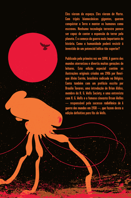 We’re really excited to share this wonderful new cover by KAKO for the new Brazilian hard cover edition of H.G. Wells’ “The War of the Worlds” for client Companhia das Letras. This special edition includes Henrique Alvim Corrêa’s astonishing illustrations originally created the 1906 Belgian edition. According to the author “Alvim Corrêa did more for my work with his brush than I with my pen.” It also includes a transcript of the famous 1940 radio meeting between Orson Welles and H. G. Wells, an introduction by British science fiction writer and member of H. G. Wells Society, Brian Aldiss and a preface by Brazilian science fiction writer Bráulio Tavares.