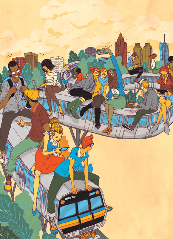 MICHAEL BYERS got to illustrate a fun illustration for Atlanta Magazine about their subway system Marta. “Can CEO Keith Parker make MARTA cool? Amid its first major expansion in 40 years, MARTA faces a bigger challenge: convincing Atlantans that they want to ride.”