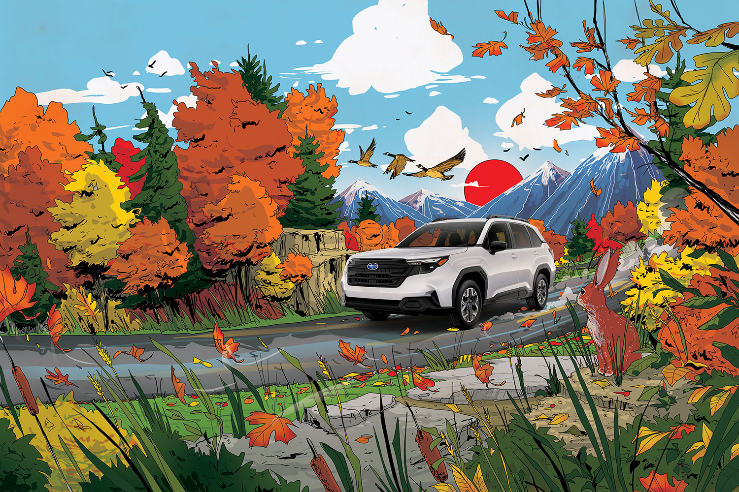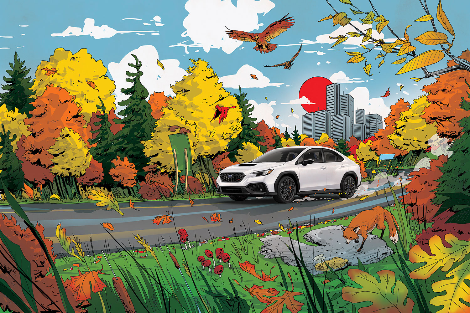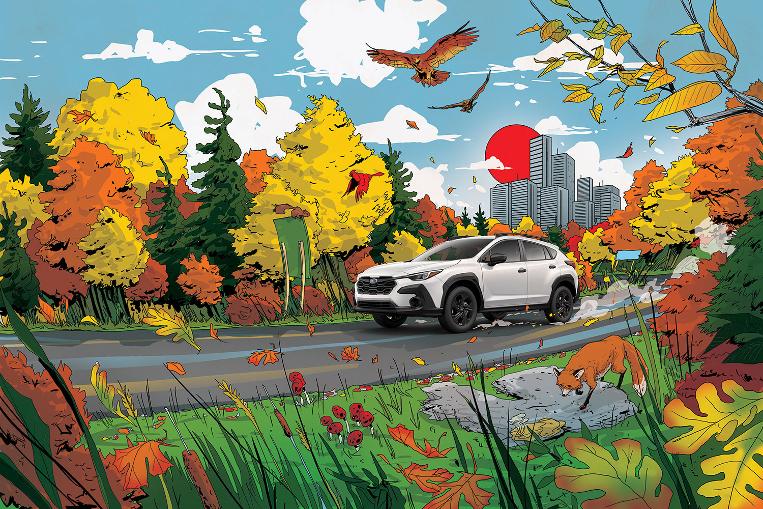 It’s time to go car shopping! Excited to share this new series by #lcmartist Michael Byers for Subaru’s Fall Retail Campaign – an amazing collaboration with Zulu Alpha Kilo. Mike was commissioned to illustrations three hero spreads for Subaru’s Autumn/Fall “Uncommon Comes-Standard” campaign that is serving as key visuals across dealerships and digital and OLV touchpoints for their Fall Retail Campaign. These beauties are all over Canada so snap a pic of you see them out in the wild.
