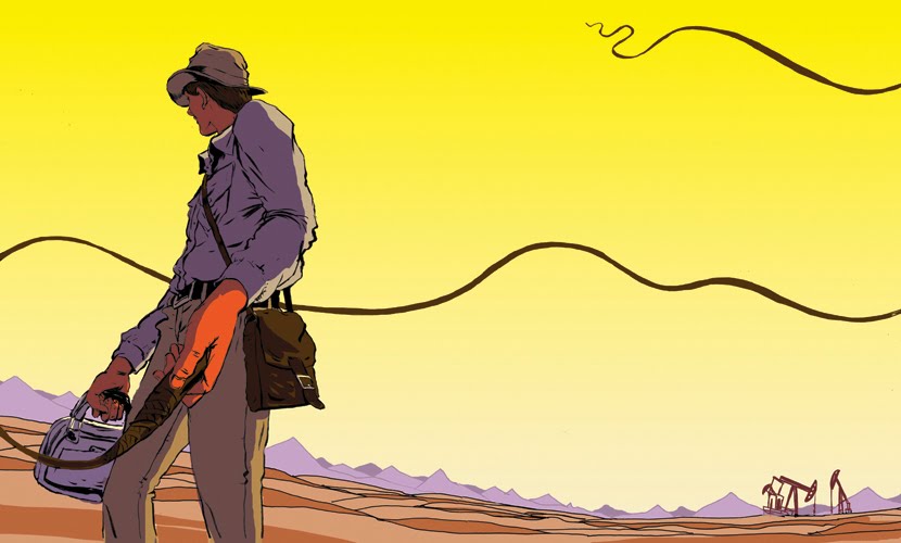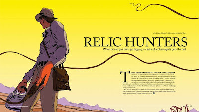 Levy Creative Management artist MICHAEL BYERS created this great piece “Relic Hunters” last month for this month’s issue of Alberta Oil Magazine. It’s about an archeologist who consults with big oil companies before they plan on starting up any oil operations. They go through him first to determine whether or not an area is safe to dig. Being an archeologist in Canada means this guy knows that Alberta has one of the richest dinosaur fossil deposits. And lots of oil….Enjoy the sketches and final.