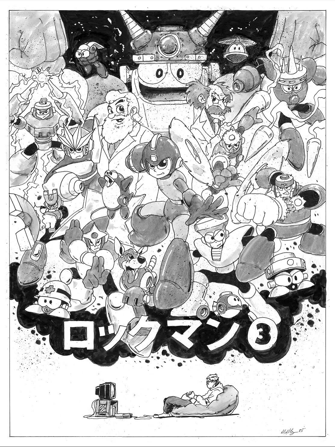 “Press Start to Remember.” Happy to be sharing #lcmartist Michael Byers tribute to Rockman 3, the game that defined so many late nights and early obsessions. This is the piece that Mike had in the I Am 8 Bit show in LA for their 20th Anniversary celebrating gaming history.