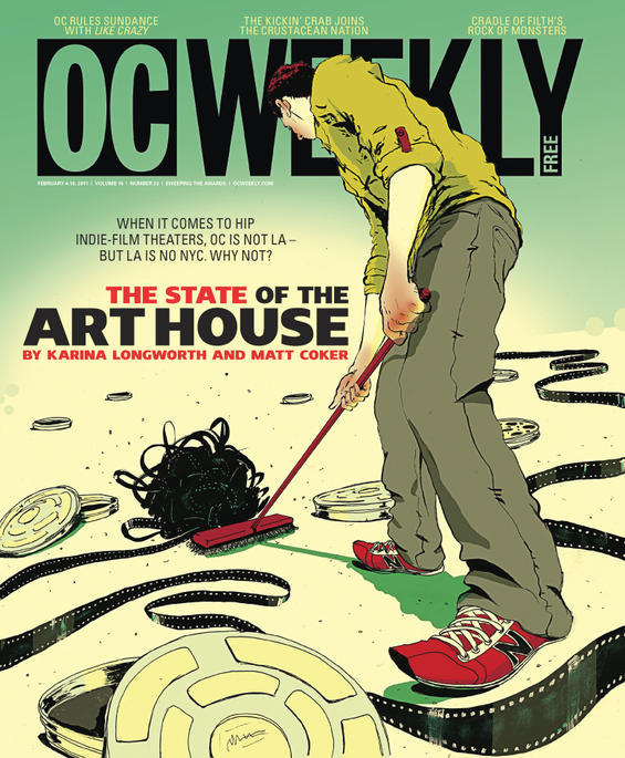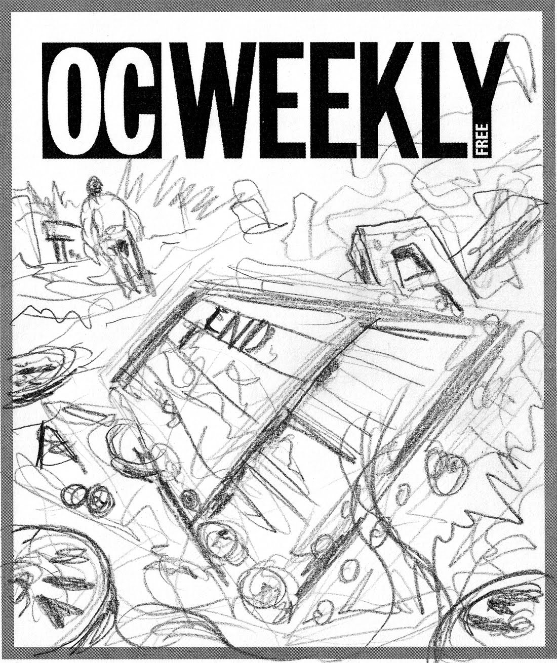 Levy Creative Management artist MICHAEL BYERS illustrates another great cover for Orange County Weekly. This piece was about how art houses are going out of business in Orange County. If they’re not going out of business then they’re in financial trouble of sorts. Mike says “I think it’s sad that this is the case because we have a wonderful independent theatre here in Guelph called the Bookshelf Cinema. Independent theatres are great. They play the movies that you’ve only heard are great but didn’t have a chance to see because the larger cineplex places don’t show them. Indy theatres also have in a lot of cases a membership system where a better rate is given to the members rather then the general public. I love my indy theatre.”