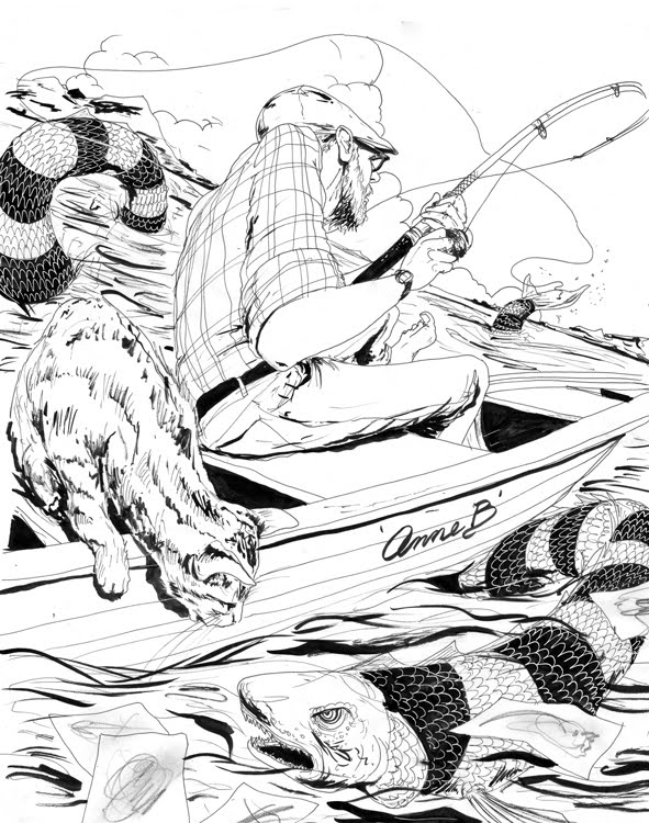 This piece was initially done with the WORK/LIFE theme in mind. I thought it’s funny to think of someone fishing. It’s like what we do. We fish for ideas. We don’t always come up with a winner or “the big one” but we still love the fact that we are able to do what we love.