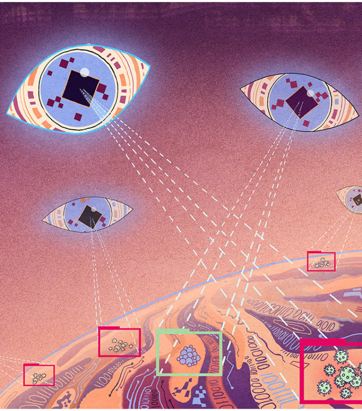 Real-time flu tracking, another illustration for Nature Outlook by ANTOINE DORE. "By monitoring social media, scientists can monitor outbreaks as…