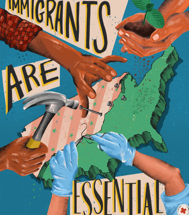 #ImmigrantsAreEssential today + everyday! Wonderful new art by #lcmartist Chloe Zola for National Immigration Law Center (NILC) + Resilience Force campaign Immigrants Are…
