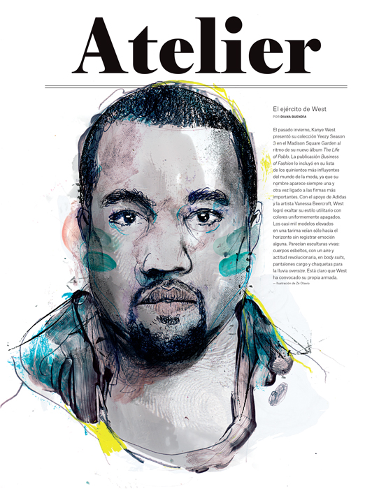 Here's a wonderful new portrait by ZE OTAVIO of Kanye West for Zé's new monthly column Atelier/El Protagonista del mes…