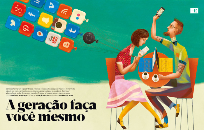 Another fun illustration by GONCALO VIANA for Expresso Magazine! This piece is about Portuguese millenial generation. It's so telling!
