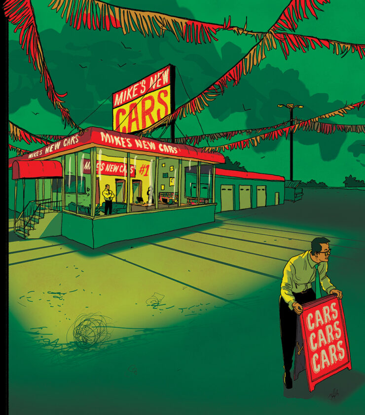 This art by #lcmartist Michael Byers says it all for Car & Driver. "Scarcity Tactics: Low on Inventory, Auto Dealers…