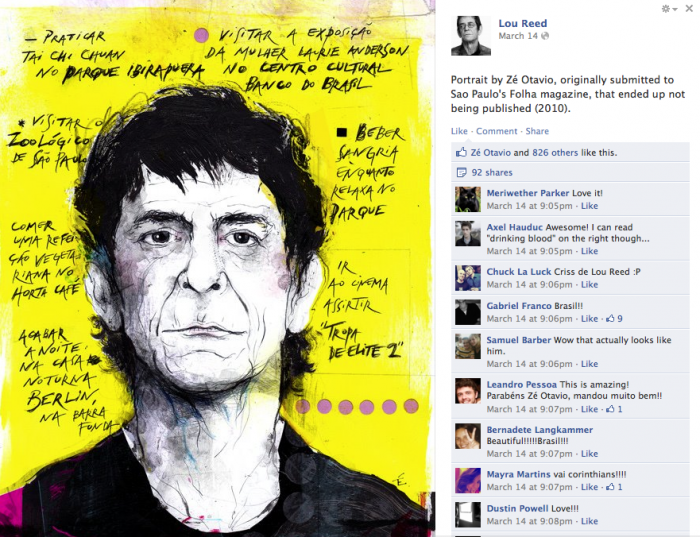 Levy Creative Management artist ZE OTAVIO got a nice surprise when he saw that Lou Reed posted his portrait on…