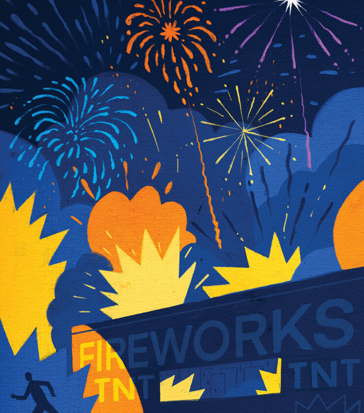 "Boom, Baby" by #lcmartist Ryan Johnson for Indianapolis Monthly. July is fireworks months. Can anyone get a license to sell…