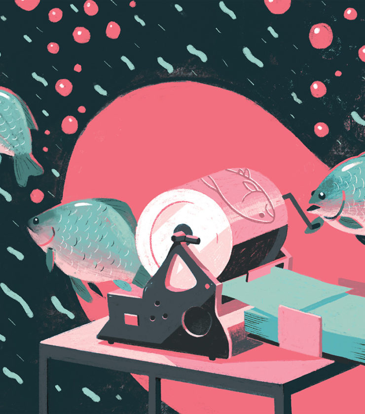 Here's a super fun illo by RYAN JOHNSON for University of Alberta's New Trail Magazine about Prussian Carp, yes Prussian…