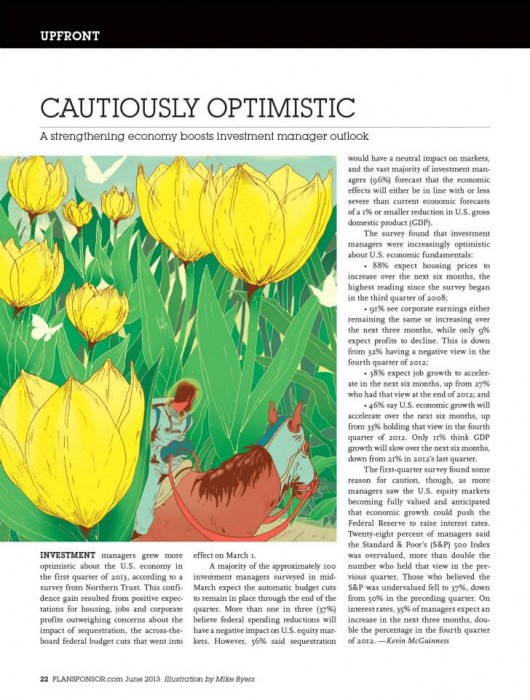 Here's a great new piece that MICHAEL BYERS did for PLANSPONSOR Magazine called "Cautiously Optimistic" -- definitely a bright piece…
