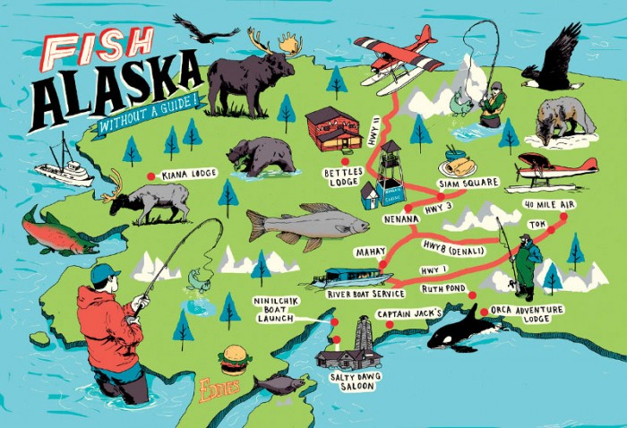 MICHAEL BYERS creates a great map for Outdoor Life on places to fish in Alaska without a guide. If only…