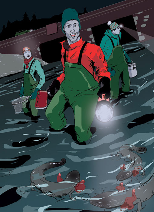 Levy Creative Management artist MIKE BYERS illustrates a great series for Canadian Wildlife Magazine. The title - "Mudpuppy Night in…