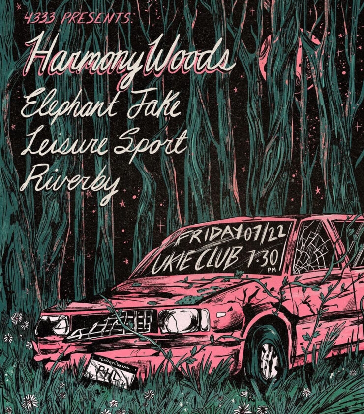 New poster for #lcmartists Evangeline Gallagher's friend Harmony Woods, Elephant Jake, Leisure Sport, Riverby -- going to be a great…