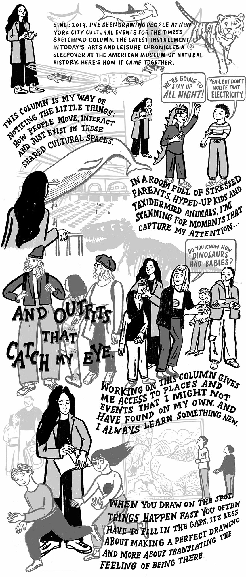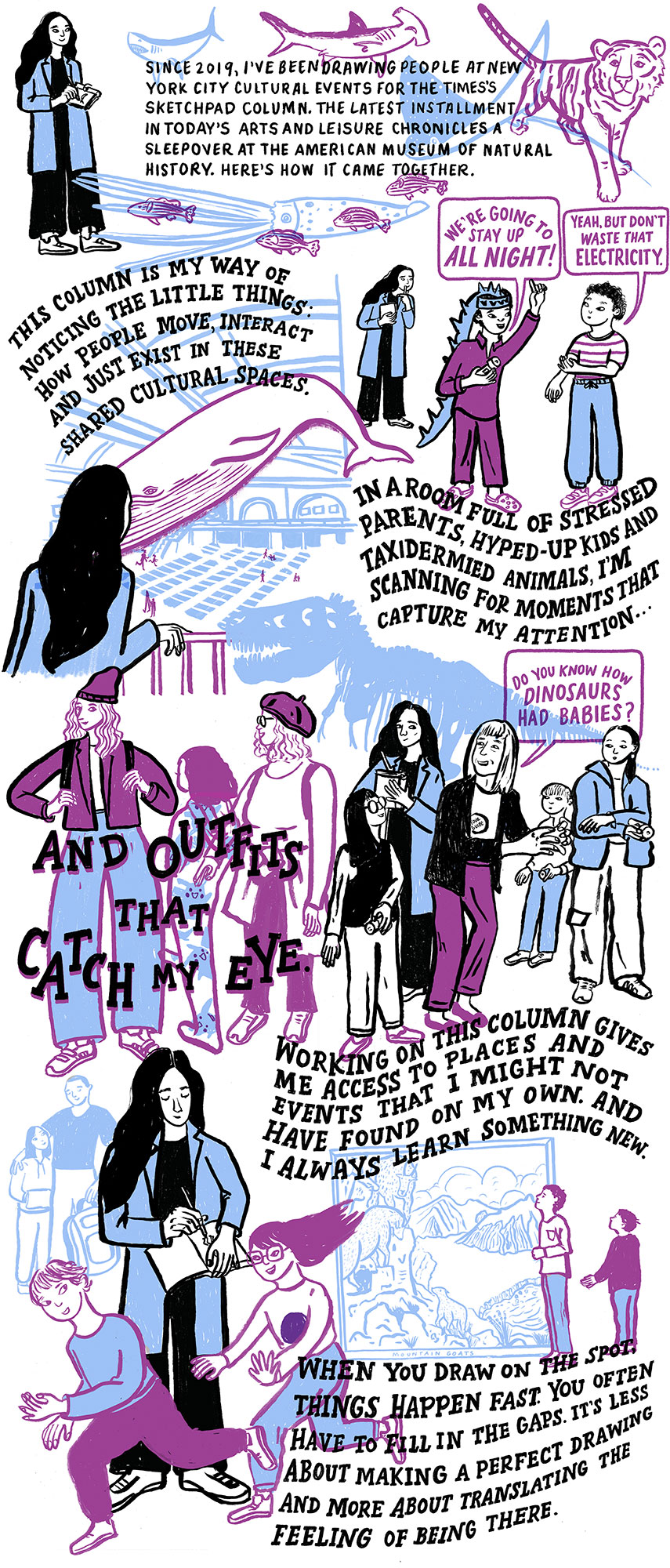 There’s nothing like going behind the scenes with an artist! Comic by #lcmartist Vidhya Nagarajan for The New York Times Inside the Times “The Story Behind The Story of Vidhya going to the American Museum of Natural History for an event for Sketch Pad and what she was looking out for. Brilliant work as always!