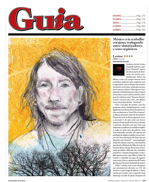 Levy Creative Management artist ZE OTAVIO illustrates a beautiful portrait of Lenine for Rolling Stone Brazil’s 5th Anniversary edition. Lenine is a Brazilian singer-songwriter.